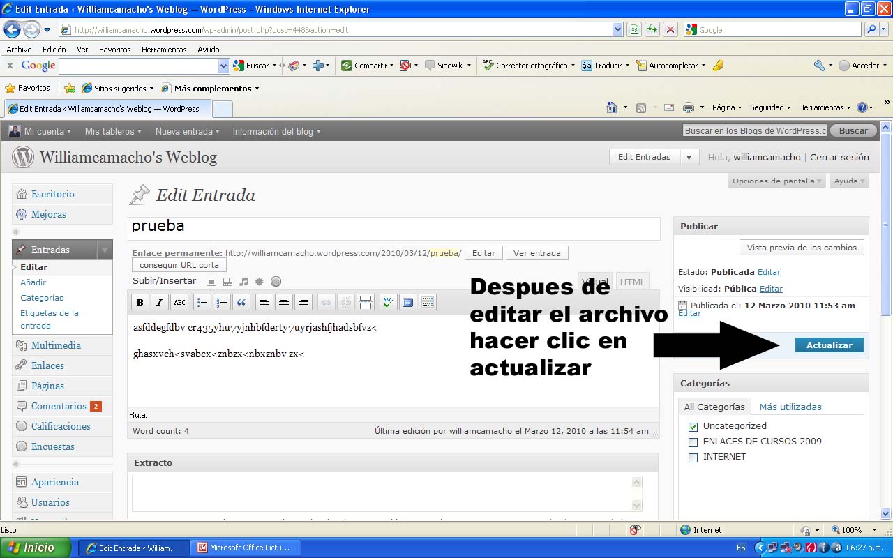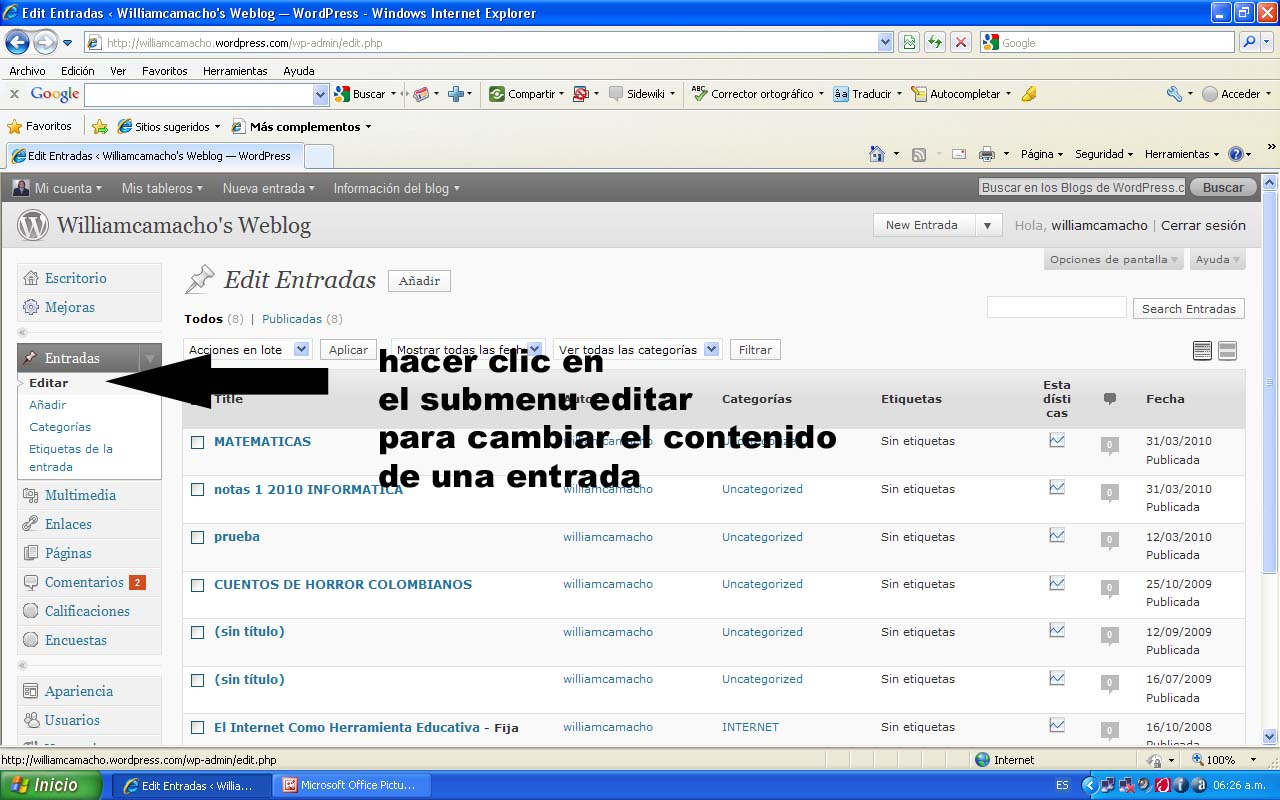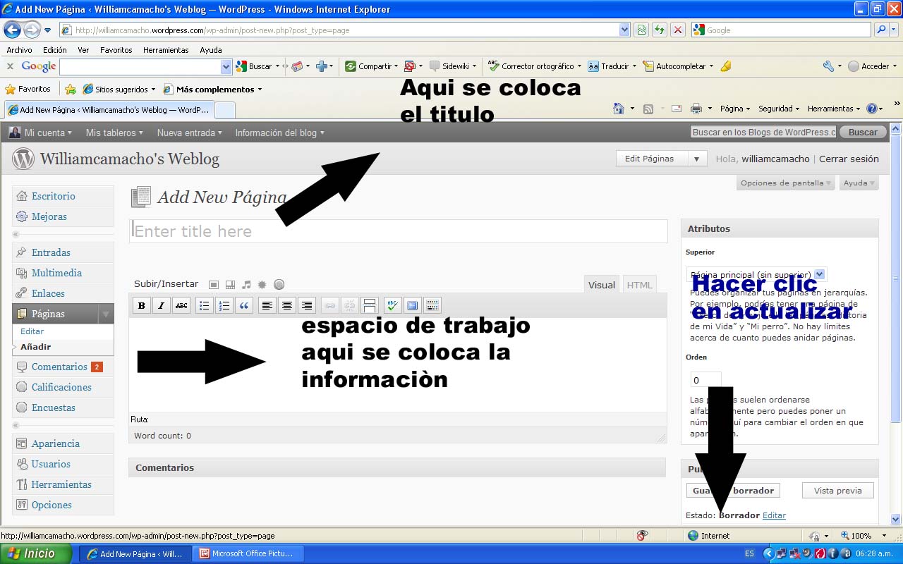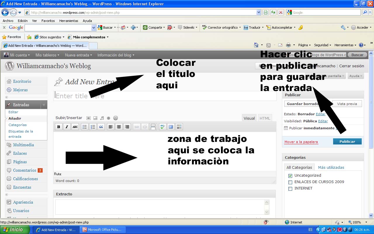 recuerde que es muy facil y sencillo crear tu weblog. Debes hacer clic en el enlace y de nuevo volver a hacer clic en el enlace, con ello se abrira un archivo de word