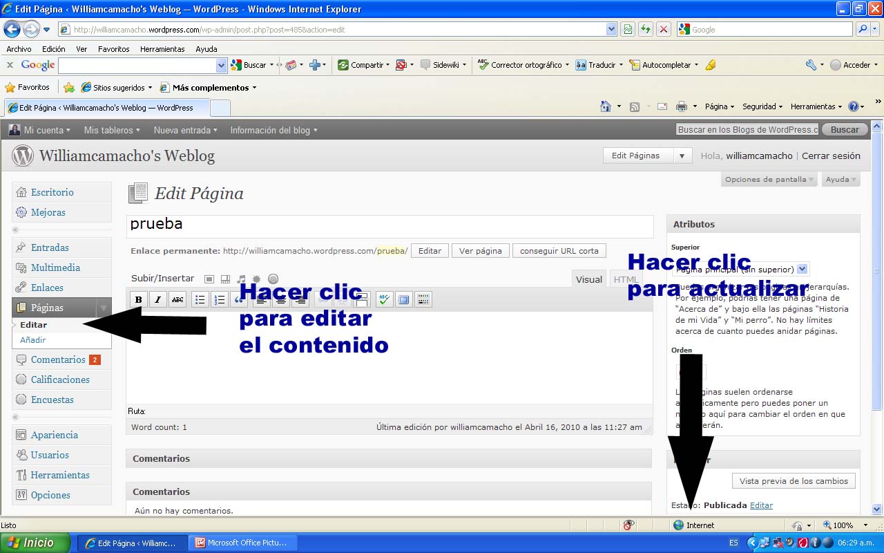 aqui encontrara el manual de creación y uso de wordpress